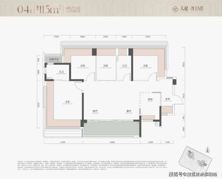 3. 115㎡四房两卫(南向/西南向,2梯5户,折后总价727-910万)