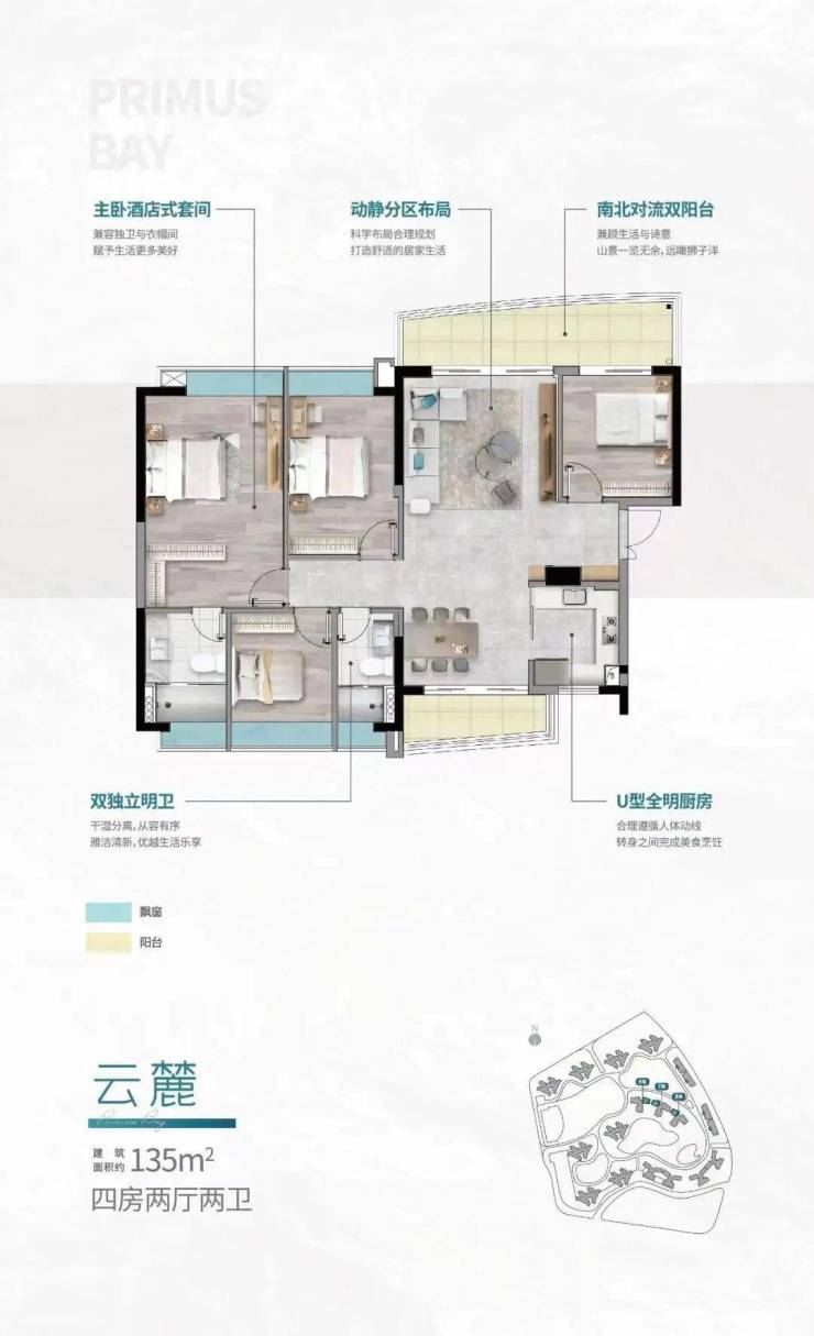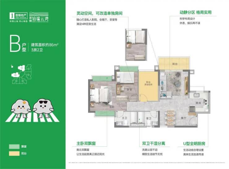 一体式双厅布局,双阳台设计