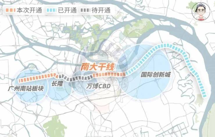 8号线东延段:7站万胜围(规划)、17号线:5站番禺广场(规划)、佛莞城轨:2站万博,3站广州南站(预计2022年年底通车)、穗莞深琶洲支线:3站琶洲(在建)