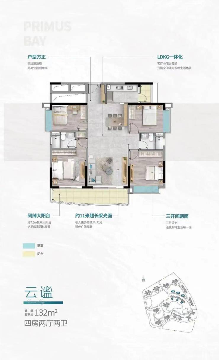 约12.6m超长采光面,房间设阔景飘窗