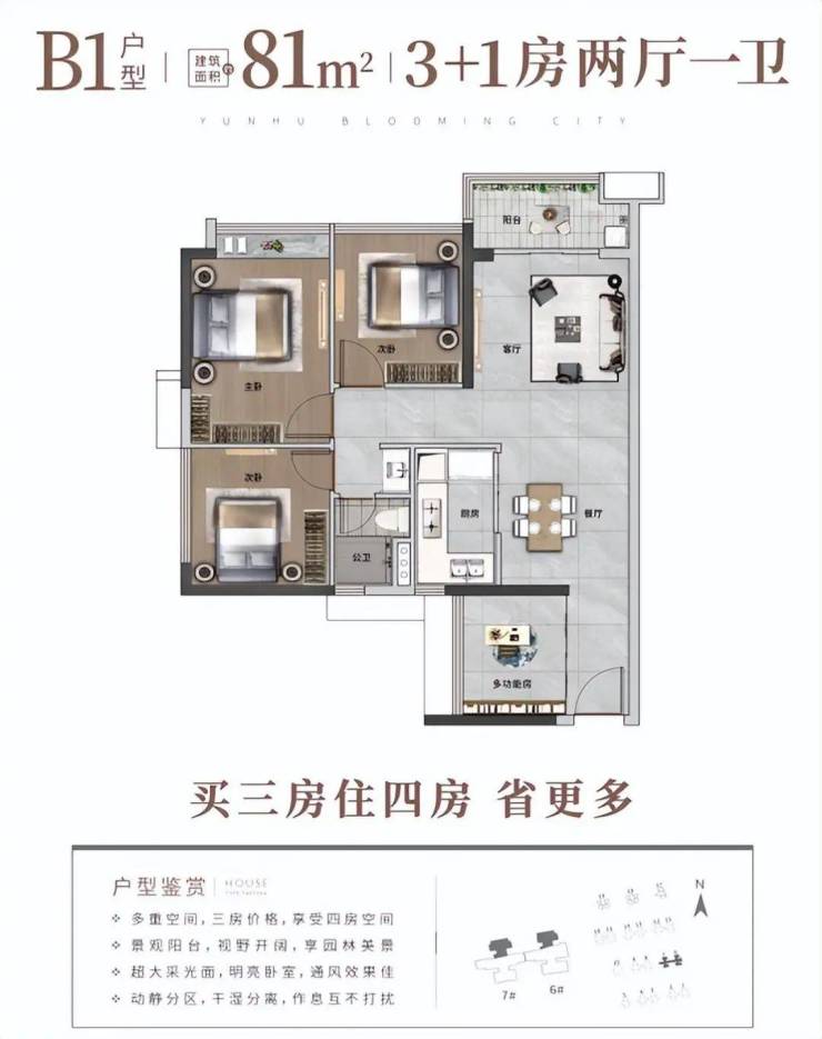 为了让业主享受更好的社区宜居度,云湖花城还打造约82米楼间距,推窗即可饱览无界视野。