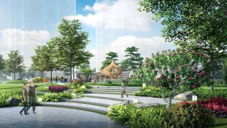 云湖花城约18万m²无分割园林,园林容积率仅2.34,绿化率35%。