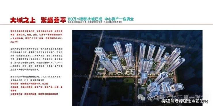 •80万㎡星河天地醇熟大城,约7000户的品质大社区,涵盖精品住宅、公寓、办公、商业等多种业态