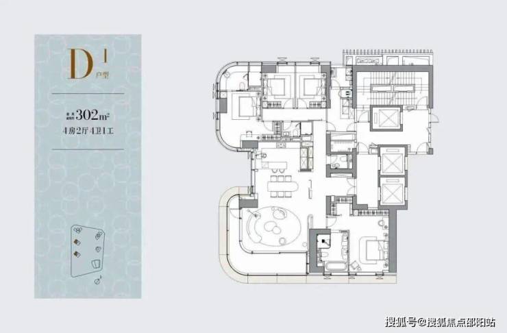 一层两户,经典大平层:约305㎡主力户型,空间布局方正大气,功能完备。