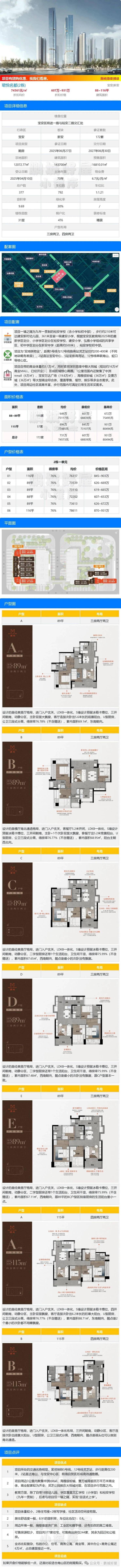 宝安区新安板块【珺悦名都】6月27日取证入市,本次推出1栋1单元/2栋1单元,共256套房源,面积有89平的3房2卫,115平的4房2卫,折扣均价7.4万/㎡,折扣总价608-931万/套,计划将在2027年6月30日带精装交房。
