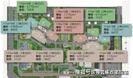 139㎡:2单元01户型(7.84万/㎡)大于1单元01户型(7.77万/㎡),价差约1000元/㎡;