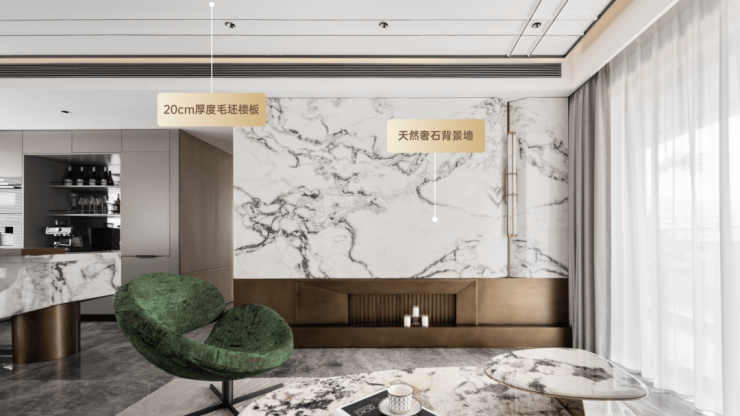而室内的背景墙石材,则选择了天然奢石“芬迪白”,每一道纹理都是时光的馈赠。