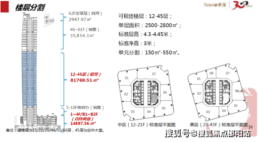 结构:项目由1栋300米高的写字楼和6栋商业裙楼组成。