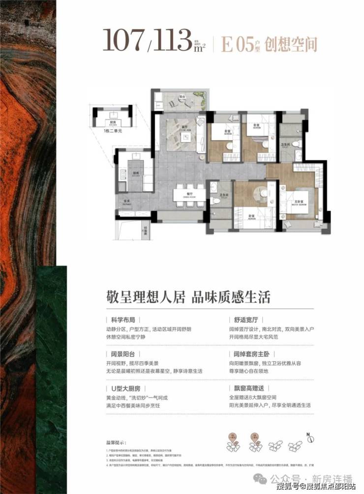 107-113平:4房2厅2卫,套内净使用率在80%,南北通透