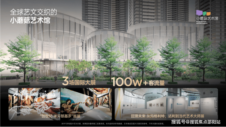 小蘑菇艺术馆,直接把艺术搬到了家门口。开馆以来,已经举办了3场国际大展,业主下楼便能欣赏国际大作;