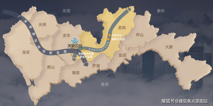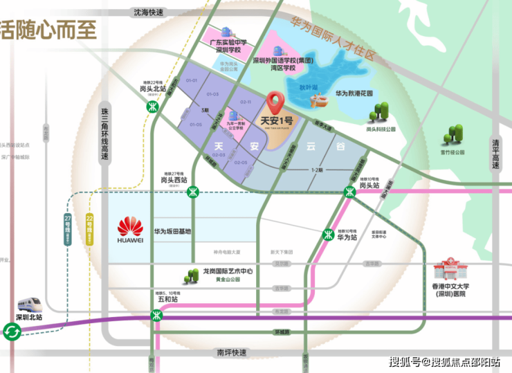 首先从区位来看,天安1号所处的位置堪称整个坂田最为核心的区域,天安云谷产业+宝能科技园+华为坂田基地都是在周边,在坂田而言这里绝对算得上是第一梯队的板块;