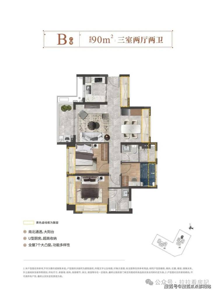 【户型】76㎡3房2厅1卫、90㎡3房2厅2卫