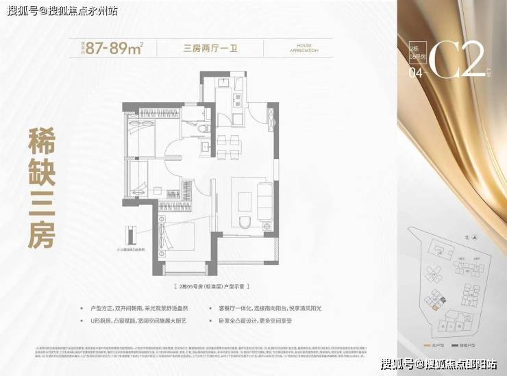 87-89㎡(三房一卫)稀缺精致3房户型,家庭生活一步到位!