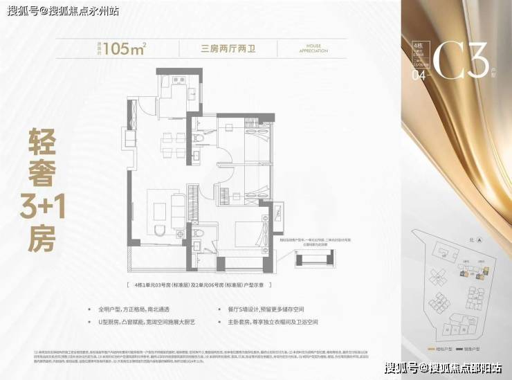105㎡(三房两卫)3+1MAX空间,轻奢进阶更舒适!