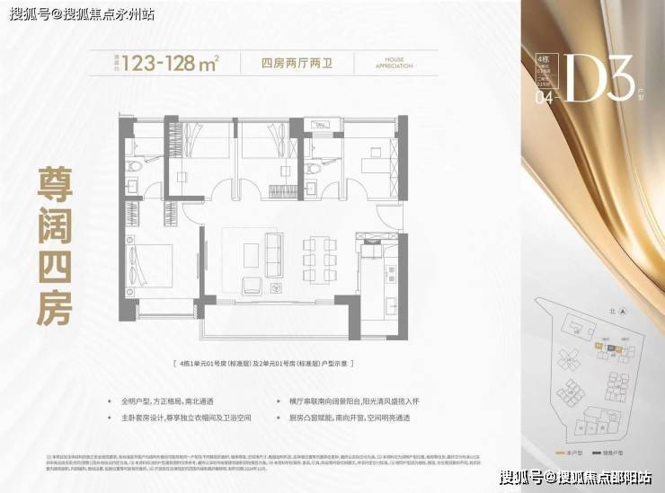 123-128㎡(四房两卫)轻奢阔绰户型,尊享高阶生活品质!