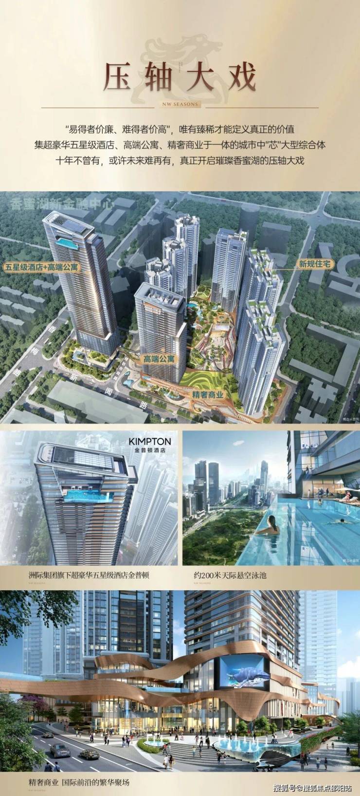 作为集新规住宅、时尚精奢MALL、五星级酒店、臻藏雅宅、高定公寓等业态的奢华综合体,总建面约55万㎡,新世界香蜜四季的配套实力足以叫板深圳湾的顶级项目。