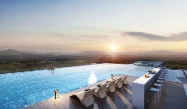 这部分涵盖约1.1万平商业广场,还有空中无边泳池、时尚健身会所等配套,为企业成员提供更高端服务。