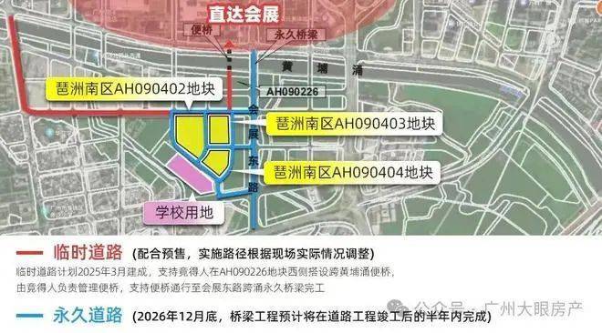 一是临时道路,会搭设黄埔涌便桥,连接琶洲中区,计划2025年约一季度建成;