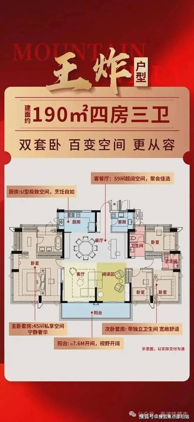 全系朝南:产品采用全南向设计,占据最优景观资源,最大化的保证客餐厅、厨房及卧室能够和山景、院景产生互动;