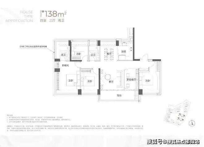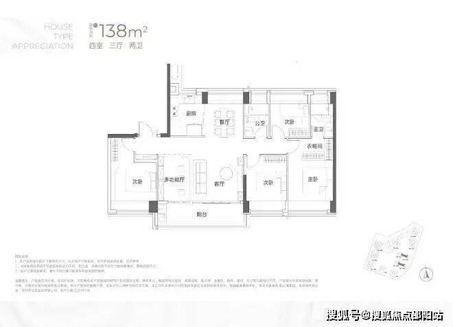 设计的是竖厅双龙抱珠格局,客厅3.5米开间,LDKB一体化,4个卧室分别做到了3.7米/3.4米/2.8米/2.6米的宽度,主卧加2个次卧270°全景飘窗,客厅连接次卧出6.1米长的大阳台,U型厨房,得房率约95-97%(包含赠送),西南或东南朝向。