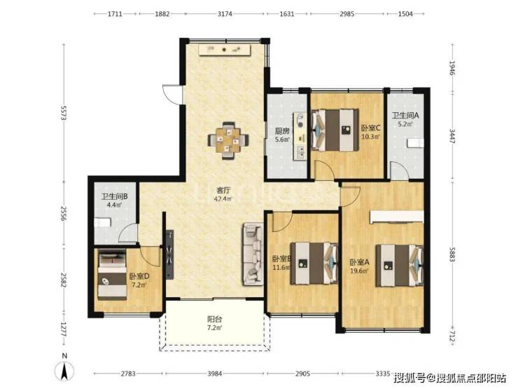 ⭐117㎡两卫(3+1房)⭐赠送30㎡
