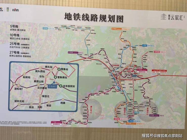 地铁配套:城建云宸汇目前距离最近的10号地铁线“雪象站”约900米,规划有27号地铁线“雪象站”距离约300米,25号地铁线“吉华医院站”距离约400米,这2条线路都已经动工,经坂银通道约15分钟可以到达罗湖,25分钟到达福田。