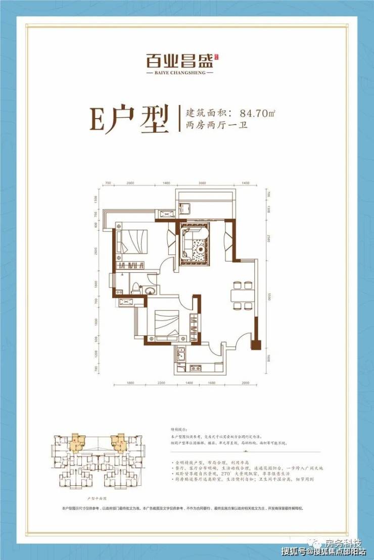 E户型 两房两厅一卫 建筑面积84.70㎡