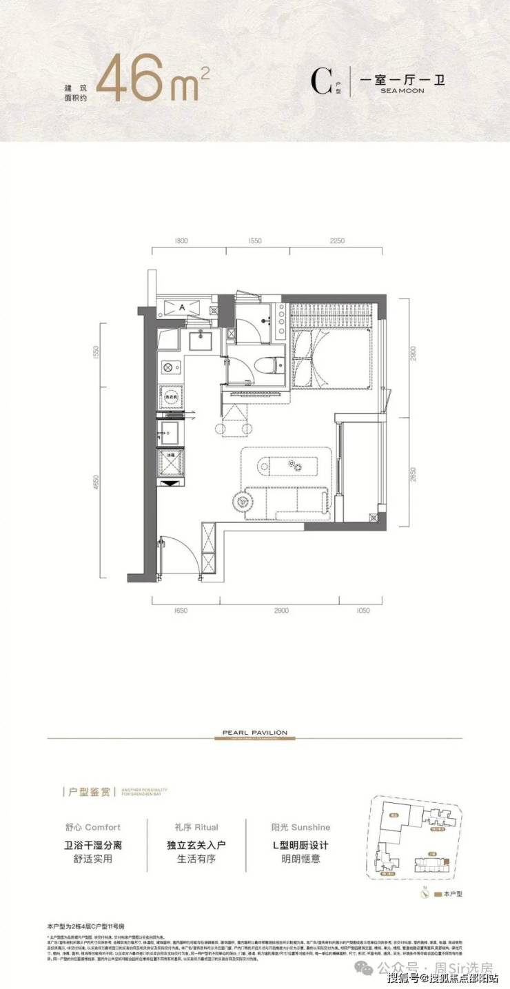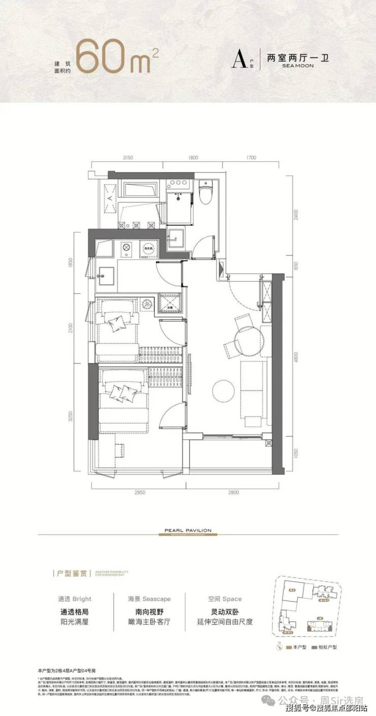 43-44㎡ | 南向瞰海一房一厅 | 落地窗