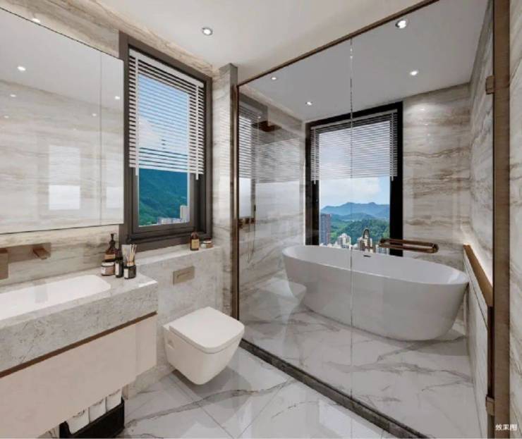 阔绰套房设计,浴室厨房亦可赏美景,客餐厅一体化设计。