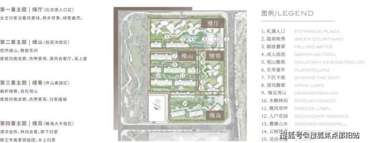 经过缦樾客厅、沿着清风馥郁,漫步在林荫小径、水榭林间、半岛池畔、溪上座等园区配套