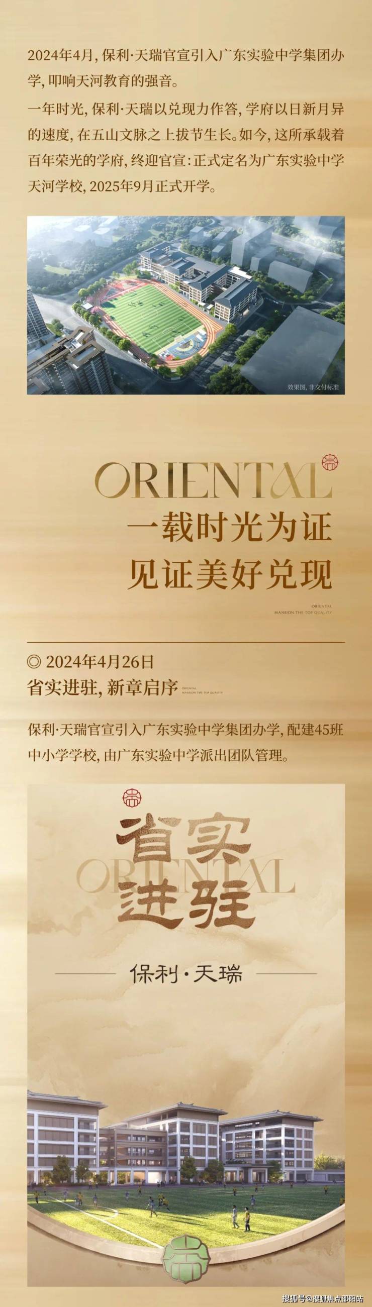 天河楼盘的配建公办学校引进省市属品牌办学,在天河这是首次,这对天河教育意义非凡,同时也是板块及保利天瑞的重磅利好,学校2025年9月开学,可以说,天瑞是这些年保利继天悦之后,最下血本,最费心血的作品