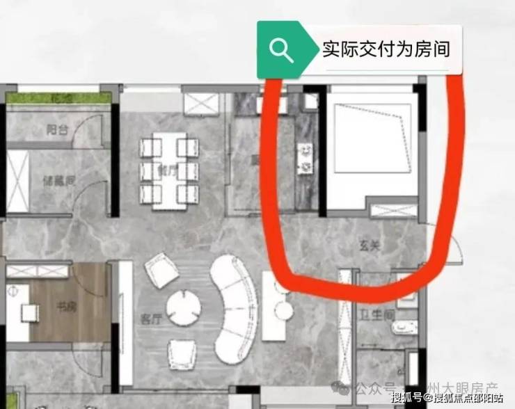重点说一下125平这个户型,右上角空白处实际交付也是一个房间