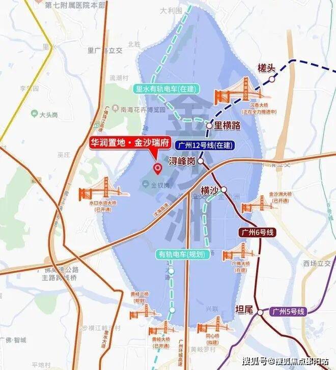 金沙洲正位于广州主城西部,与传统老城荔湾区仅一桥之隔,而与珠江新城的直线距离也不过约14公里。
