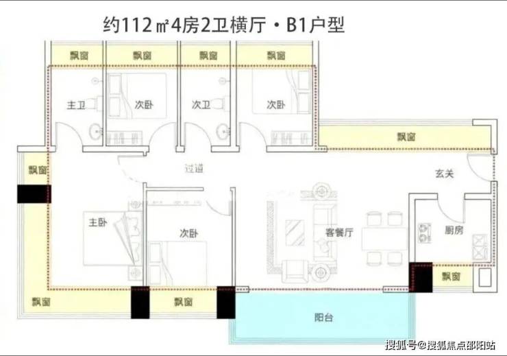 约105-122㎡四房:作为“功能型品质起步”户型,凭借新规下的高实用率(包含赠送得房率约100%)选。主卧均带270°环绕式飘窗,户型设计通过飘窗“送了不少面积-。