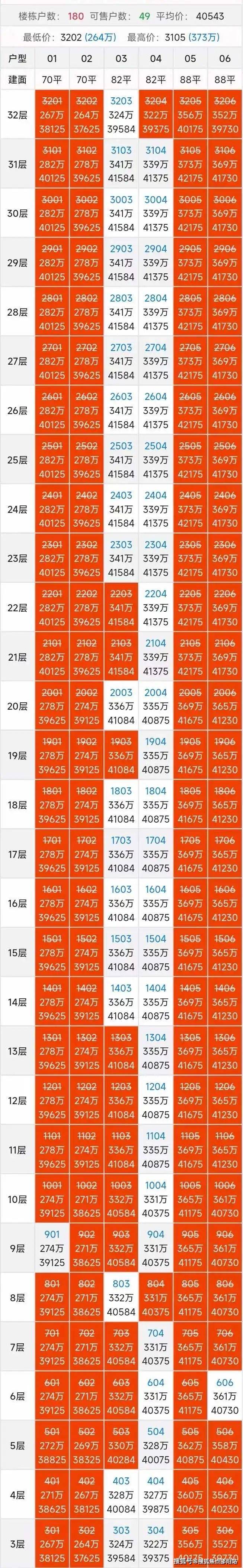 面积有70㎡的2房1卫,81㎡的3房1卫,87-89㎡的3房2卫,113㎡的4房2卫户型,备案均价4.11万/㎡,备案单价3.76-4.43万/㎡,总价264-503万/套,计划在2025年3月份前带精装交房。