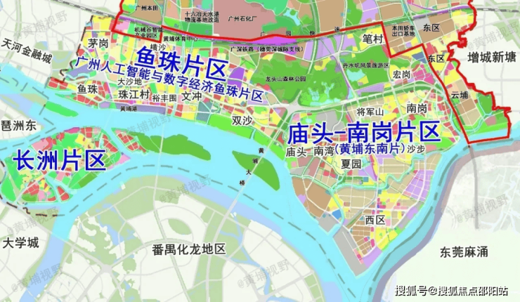 中建未来方洲位于鱼珠片区的文冲东旧改,旧改分为三个片区:渡头组团,文元组团,江北组团