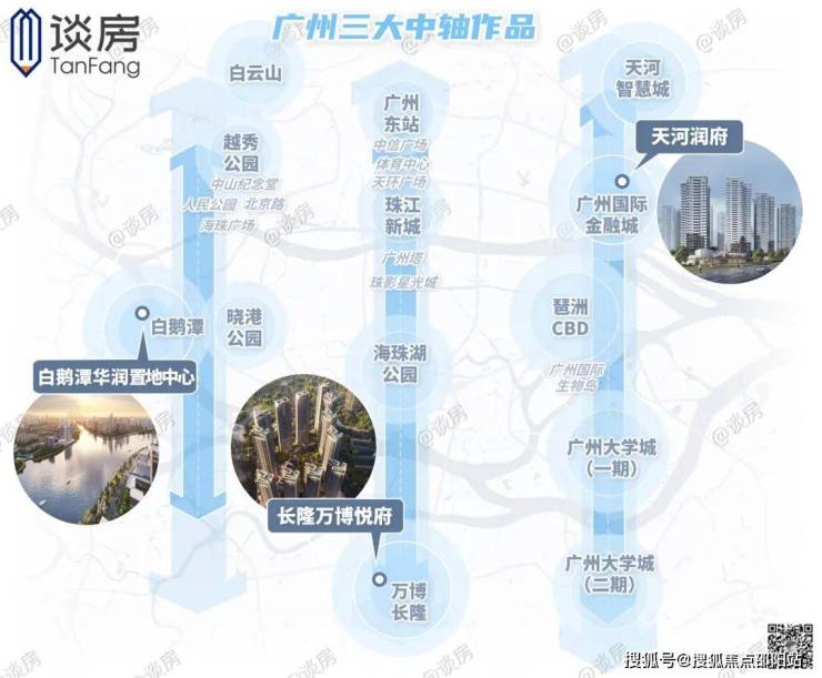 天河润府、长隆万博悦府、白鹅潭华润置地中心分布位于广州的三条中轴线之上,屹立在城市精华地段: