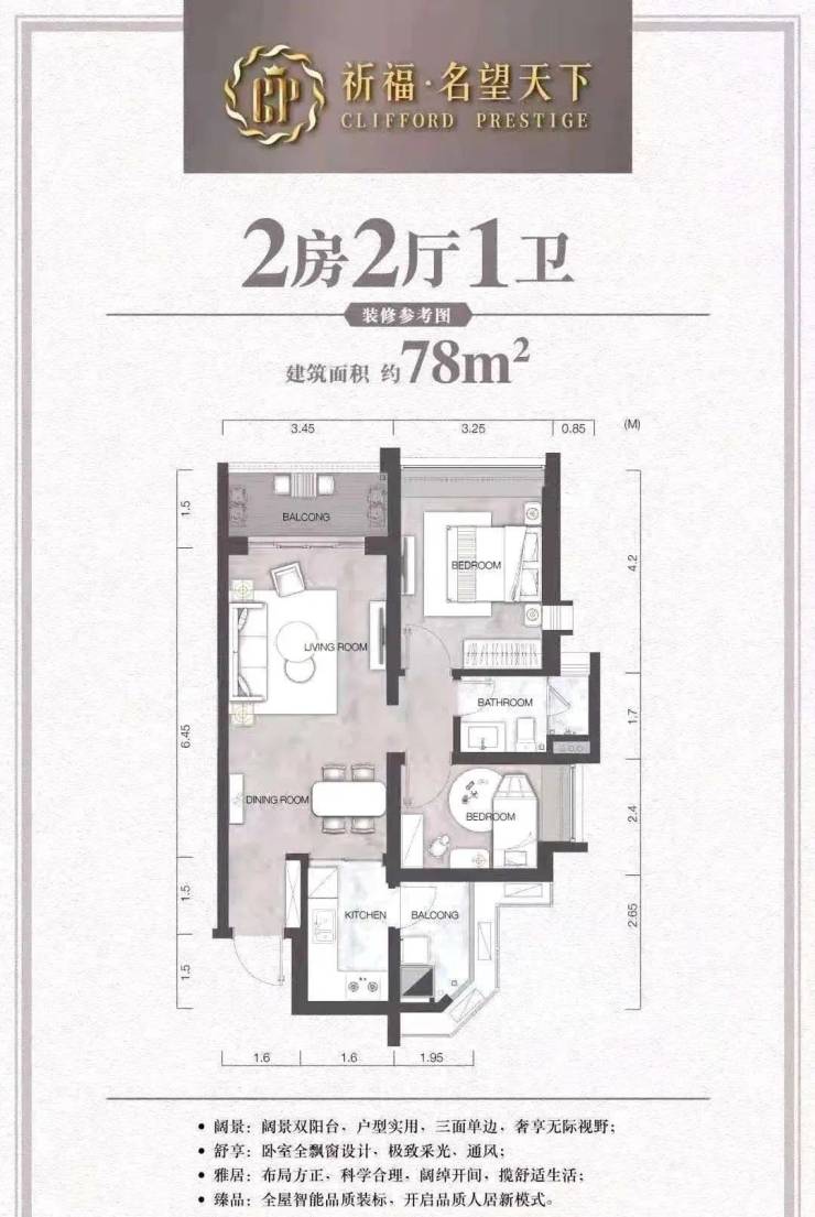 项目涵盖78-175㎡二至五房,覆盖刚需、改善户型,户户双阳台。