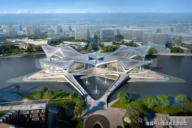 市民艺术中心:由国际著名建筑事务所ZahaHadid(扎哈·哈迪德)设计,将以水上曲线艺术建筑称著世界,建筑面积是日月贝的三倍之大,建筑功能主要包括剧院、音乐厅、科技馆、多功能厅、艺术展厅及商业配套设施等,建成后将成为珠海新地标