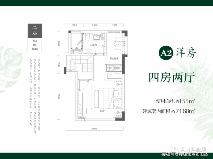 二期在售户型2:跃层洋房74.68㎡三房一厅