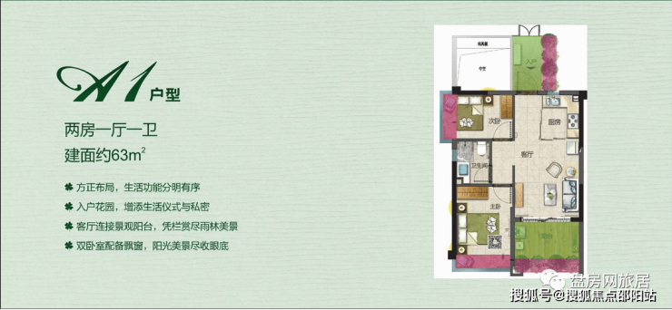 三期在售户型2:高层住宅63㎡两房一厅