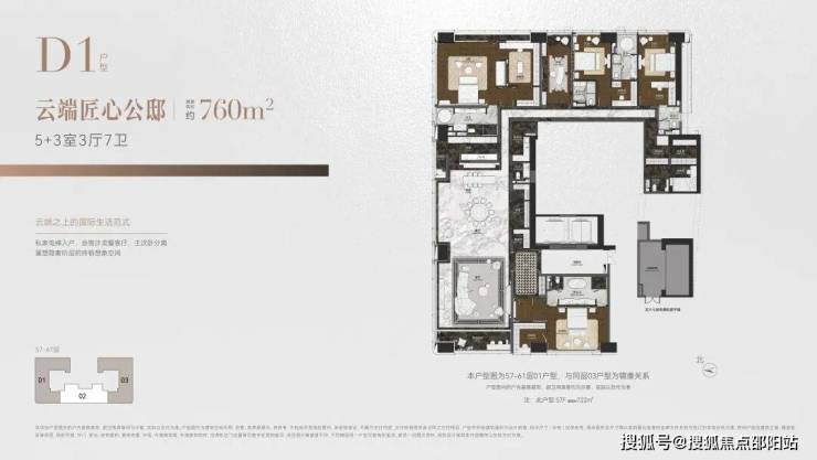 ◎建面约760㎡ 5+3室3厅7卫 云端匠心公邸