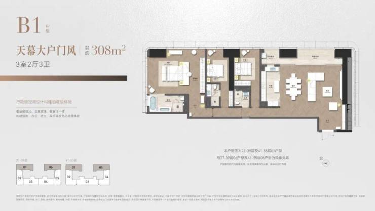 ◎建面约308㎡ 3室2厅3卫 天幕大户门风