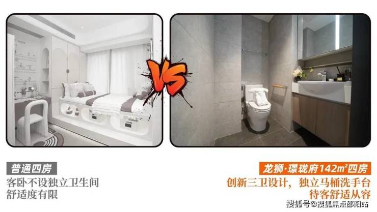虽然它超配做出了两个套房、三个卫生间,但不用担心,客卧的卫生间只设计了独立马桶和洗手池,既卫生,也完全没有空间浪费。