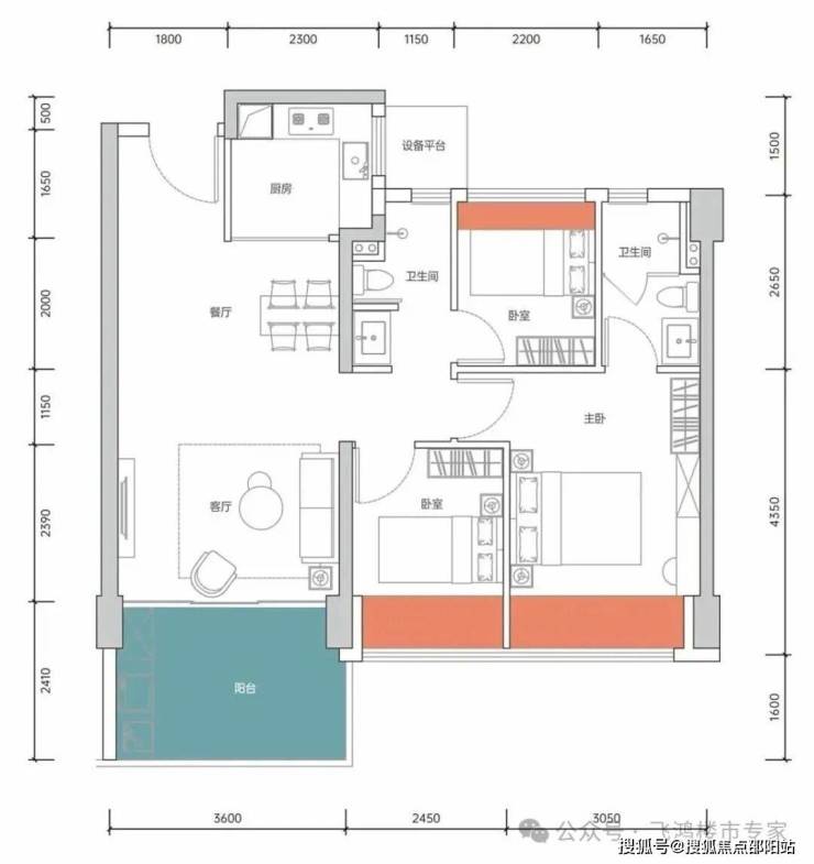 88㎡的3房2厅2卫户型则更为舒适,客厅开间3.6米,三开间朝南,设计有双卫生间1。这种户型对于有孩子的家庭尤为合适,避免了早高峰抢卫生间的尴尬。
