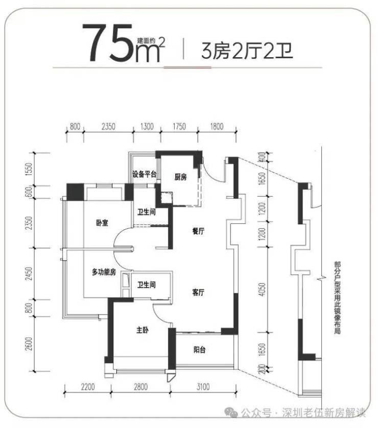 ● 75平3房2厅2卫:真正的同等面积多一间房,还多一间卫生间!