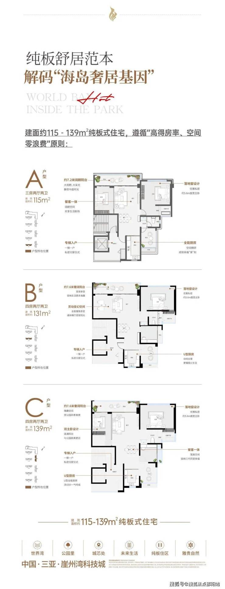 生态圈:生态宜居 活力舒居。观海公园、通海公园、滨海公园、滨河公园、中央公园、南繁公园、三角梅科博园七大公园景观环伺,环抱更多自然生活逸趣,出门即遇自然美景。