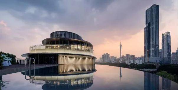 目前琶洲南TOD周边的商业配套比较单一,但是各类商业规划非常丰富,而且我们也不用担心最终的落地程度。项目分为南北两个地块,北地块是住宅区;而南地块,规划了约30万㎡建面的商办建设量,与北地块和轨道交通,一起组成琶洲南TOD。社区内部,则打造有高端会所——“弧光·琶洲城市会馆”,匹配琶洲城市新贵的社交需求,与一般项目会所不同,其首先令人眼前一亮的,便是极富艺术感的外观,圆弧玻璃幕墙,加上简约感的线条,展露出一种自然流动的美感。
