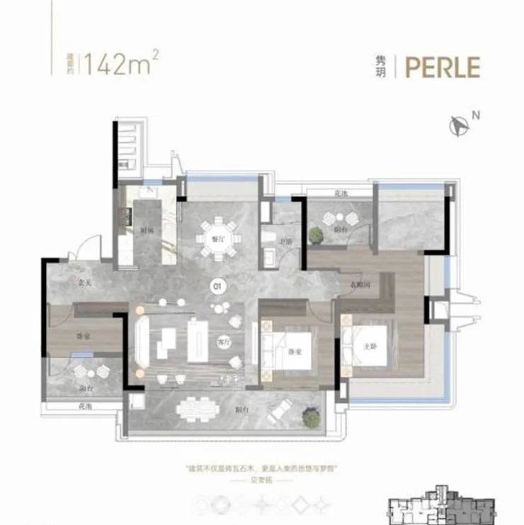 其中20#、21#的142平延续了一期的经典格局和品质,在飘窗采光面、空间尺度等细节之处做了迭新升级,打造板式楼栋设计,独梯独户的豪宅私密性,并加强了三面采光、实现了餐客厅、主卧的南北对流。