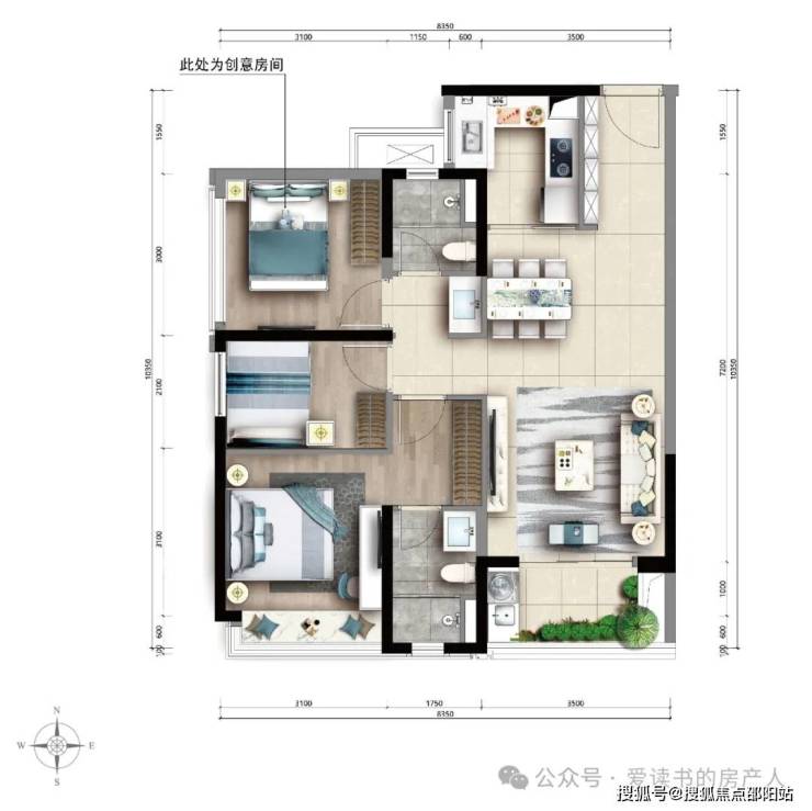 约112㎡南向瞰景大横厅全能3+1房 创意大横厅格局,全市罕见约6.4米南向瞰景大阳台,尽览四季美景